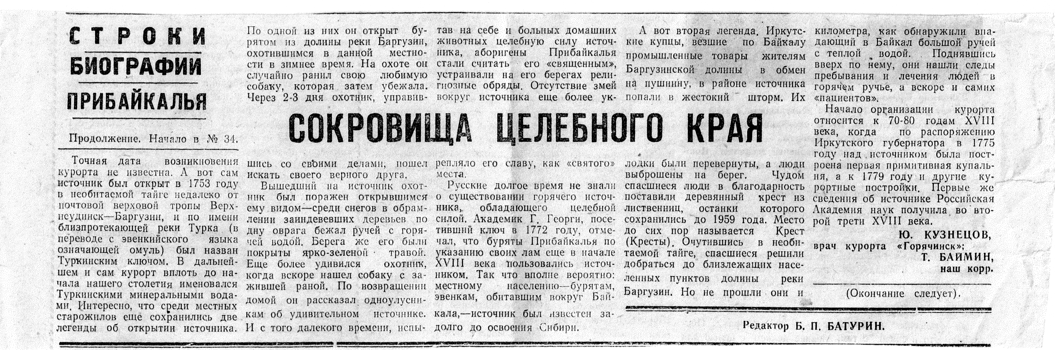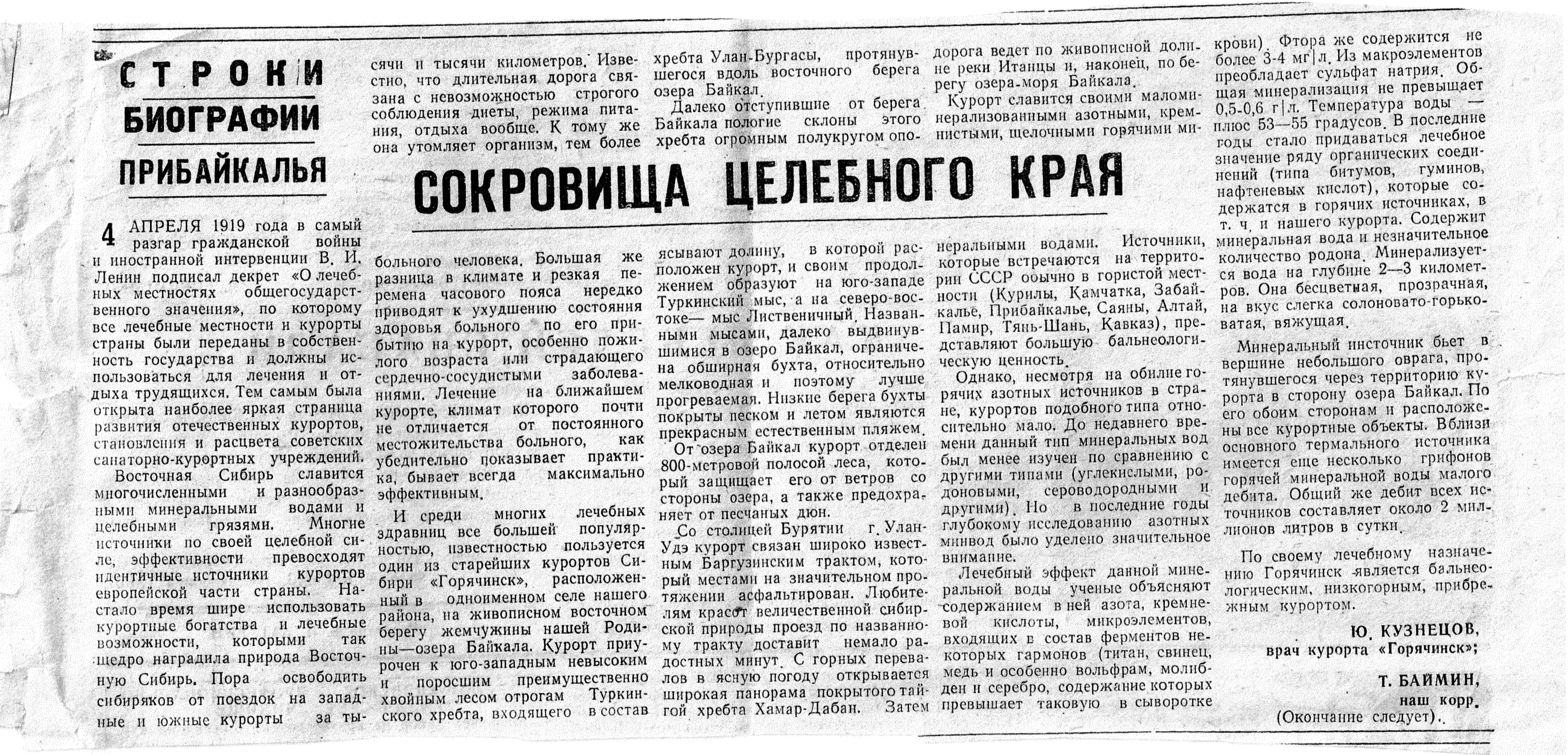 Врач курорта «Горячинск»: Ю. Кузнецов,